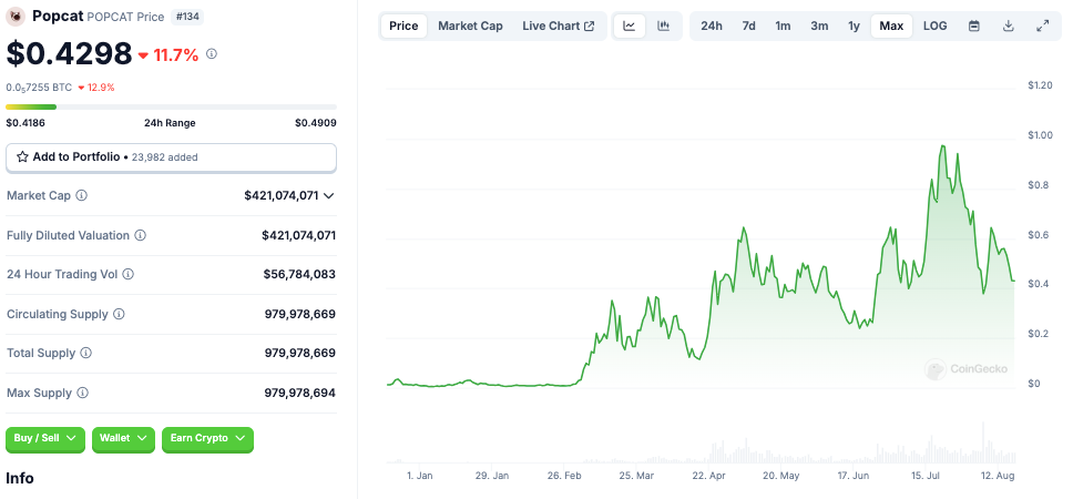 The CIO believes that POPCAT is one of the strongest memecoin holds of this current cycle and has no plans to sell any of his holdings until a single popping cat token is worth well above $1.