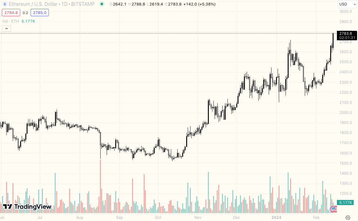 Now that institutional investors know that a Bitcoin ETF can attract over half a billion in inflows in a single day, it would be pretty surprising if excitement for spot Ethereum ETF didn’t translate into some very spicy price action for ETH.