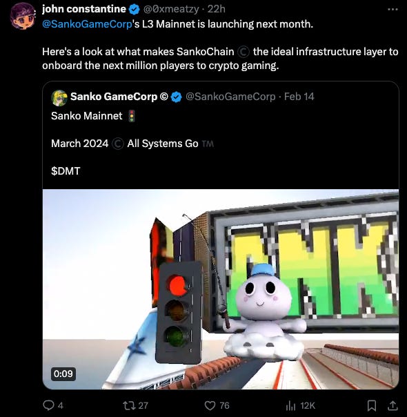 This leads him to his favourite (and most accursed) holding of the current cycle: Dream Machine Token (DMT) the native token of the Sanko Game Corp ecosystem.