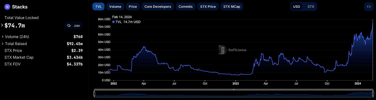 While transactions on Stacks still take approximately 45 minutes to execute (lol), investors can look to the Nakamato upgrade — slated to arrive around the time of the halving — which will see transaction times significantly reduced. I don’t pretend to be good at predictions but I do expect bountiful growth on Stacks around this time.