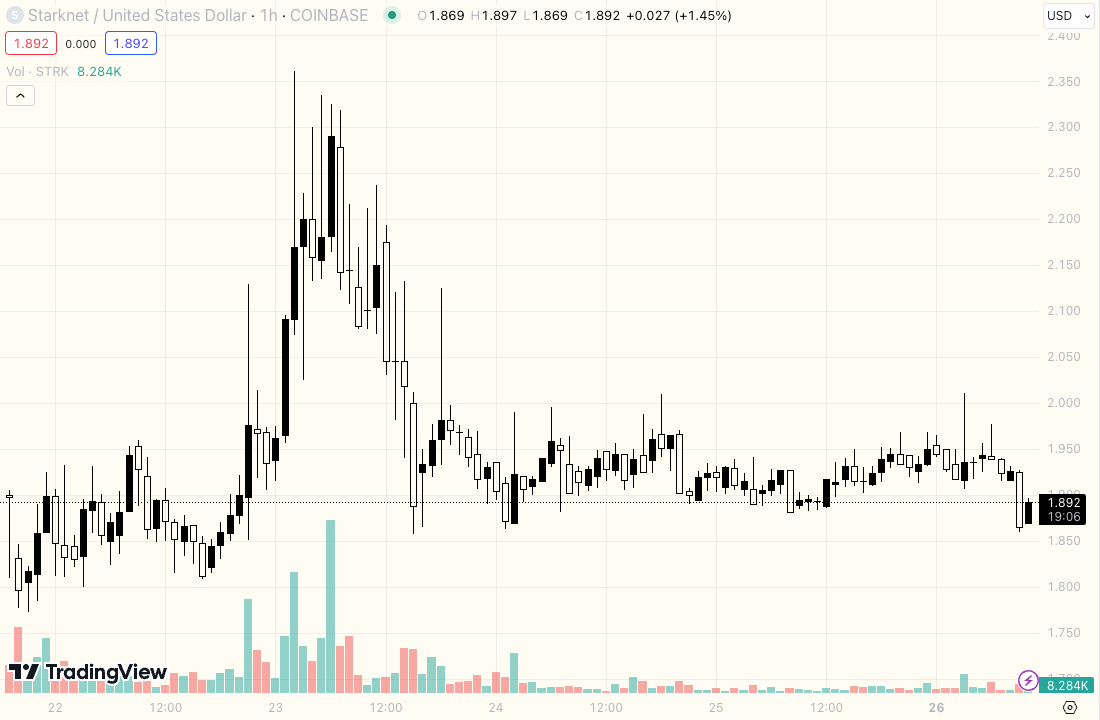 While it took months for Aptos to recover, that was in the depths of a bear market in 2022. Now that we’re in uponly mode, I think it’ll only take a few weeks for Starknet to really kick off.