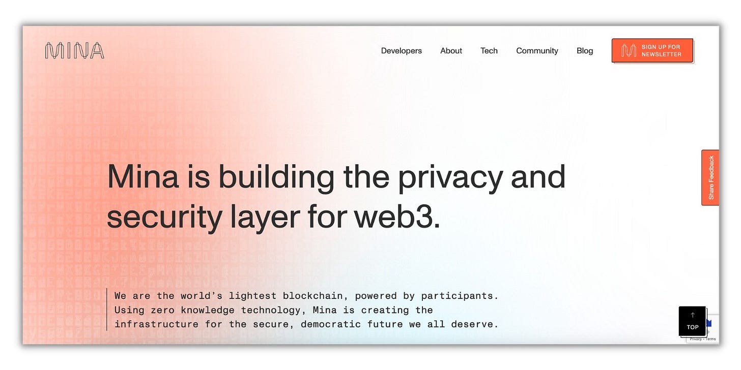 The Mina Protocol markets itself as “the world’s lightest blockchain”. By using ZK technology, Mina keeps the size of its nodes really small, making making it ideal for the developers of decentralized applications looking to provide users with lightning-fast and cost-effective transactions.