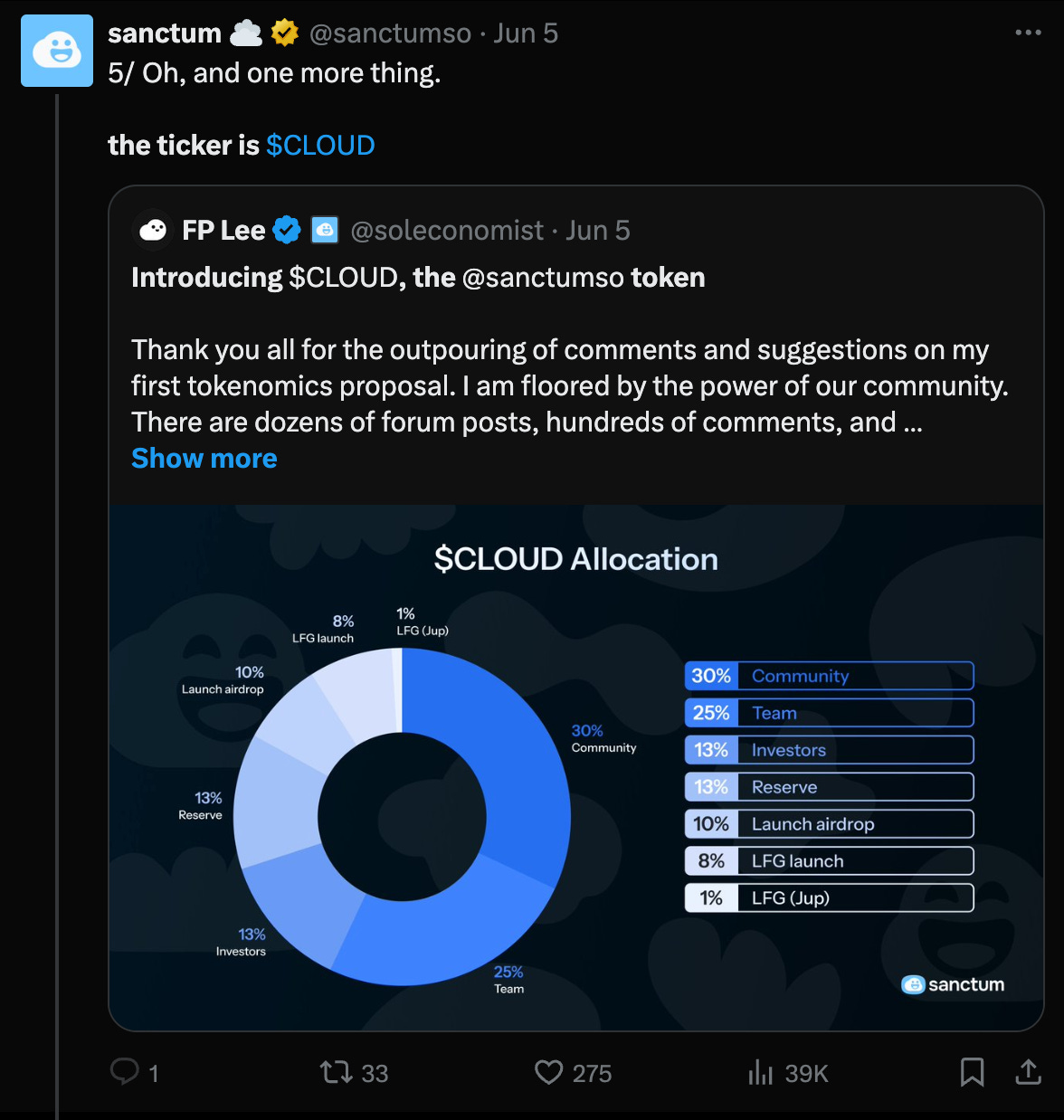 The Sanctum team has been super transparent about the upcoming token-generation event for the native CLOUD token. Usually, this isn’t cause for celebration but following the absolute shit show of airdrops in recent months, this is a certified masterclass in handling press ahead of a token drop.